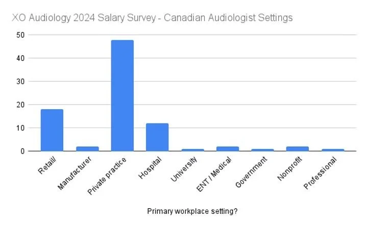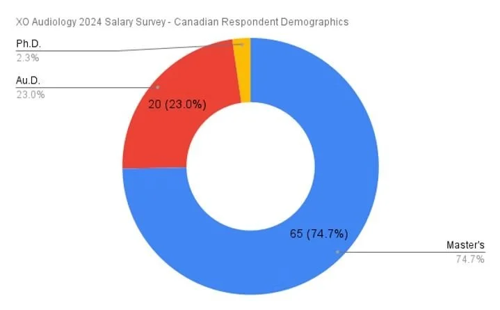 The charts and data below contain the survey responses from the XO Audiology 2024 Salary Survey. The following is specifically looking at Canadian audiologist responses. Respondents were invited through social media to complete the online survey in early 2025.